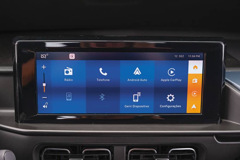 A configuração é completa, com rodas de liga leve de 15”, multimídia com Android Auto e Apple CarPlay sem fio, ar-condicionado, sensor de pressão dos pneus, assistente de partida em rampas, volante multifuncional, vidros elétricos dianteiros e traseiros e luzes diurnas de led. Por outro lado, tem apenas dois airbags e fica devendo câmera de ré ou sensores de estacionamento traseiros.