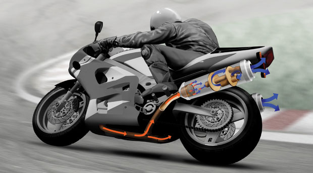 Assim, o catalisador motociclístico fica quase sempre dentro de um espessamento do tubo de escape, agora quase inexoravelmente de inox, próximo da saída do coletor ou adiante, na ponteira – onde quase sempre há mais espaço. Sim, sua adoção aumenta o peso da moto, ainda que só um pouquinho, e tem causado reflexo no design motociclístico, em que a distribuição de massas é crítica: já reparou a quantidade de motos em que o escape fica sob o motor, quase oculto?