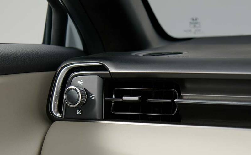O painel, por sua vez, está minimalista. A central multimídia é destacada e abaixo dela há apenas o botão do pisca-alerta e os controles do ar-condicionado. As saídas de ar-condicionado estreitas permanecem e agora vão quase de ponta a ponta do painel, enquanto a alavanca de câmbio permanece em posição elevada no console.