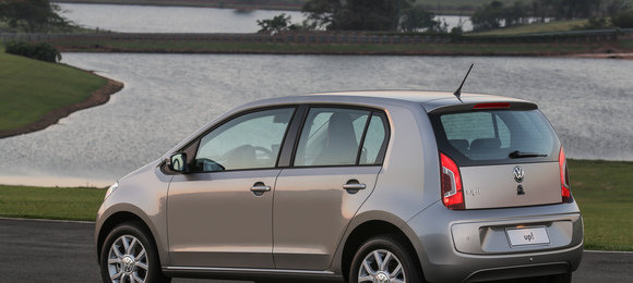 A Volkswagen mostrou uma nova imagem do Up nacional. Desta vez o carro aparece de traseira, revelando uma das principais novidades do modelo brasileiro: a tampa do porta-malas em aço no lugar da peça de vidro utilizada na Europa. A troca teria acontecido por motivos de segurança, já que ladrões poderiam quebrá-la para ter acesso ao interior do veículo.