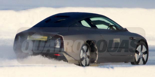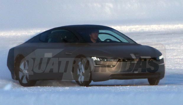 Embora pareça saído diretamente de um filme de ficção científica, o XL1 realmente será produzido pela Volkswagen. Desta vez, os caçadores de segredos encontraram um protótipo sendo testado em meio à neve.