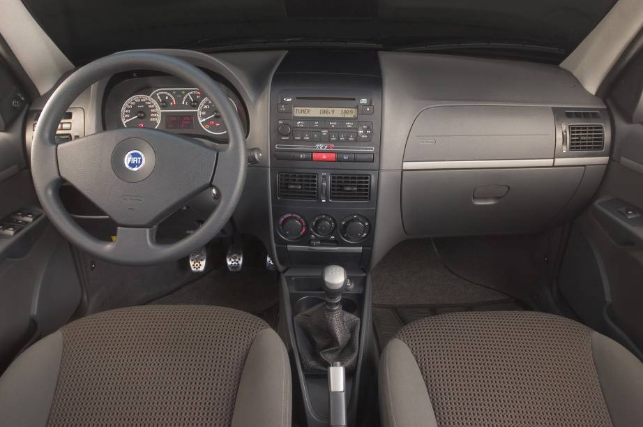 Os pedais de alumínio e borracha têm o logotipo da Fiat e a iluminação dos mostradores, que na linha Palio é alaranjada, ficou vermelha, como nos carros da Audi.