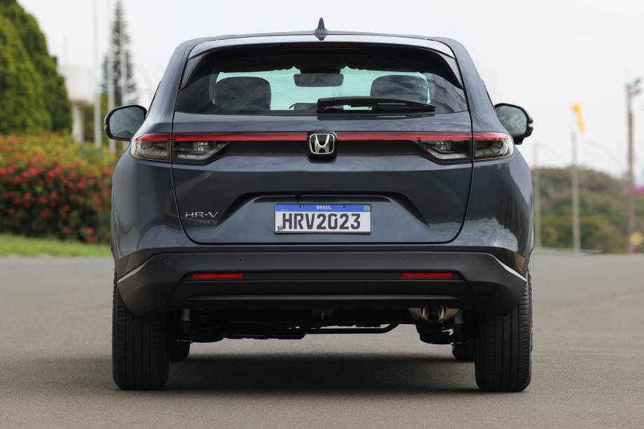 Uma curiosidade: a tampa do porta-malas, das lanternas para baixo, tem sua superfície feita de plástico. É um alento para quem tiver receio de a tampa ficar cheia de amassadinhos como acontecia com o Fit quando, assim como esse HR-V, não tinha para-choque traseiro tão saliente.