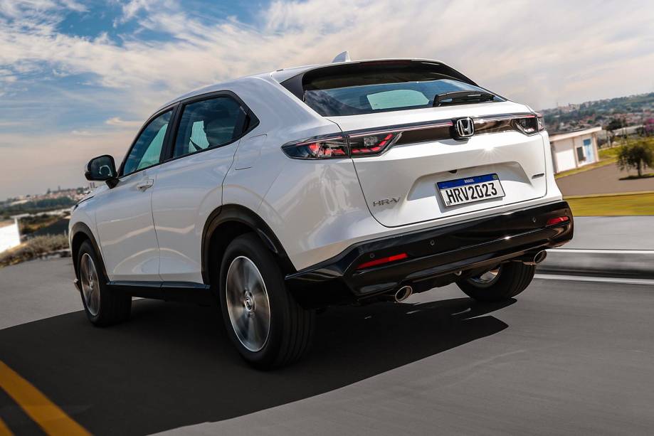 A traseira com caimento do teto bem marcado, quase de um SUV cupê, também permite reconhecer a mecânica. Nas versões 1.5 turbo as lanternas interligadas por uma barra iluminada são cinza quando estão apagadas. E ainda tem as duas saídas de escape destacadas pelo para-choque com visual próprio.