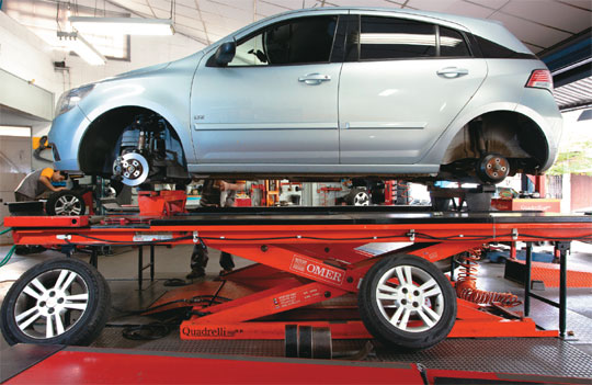 Depois que o Smart Fortwo teve um de seus pneus inutilizado por falhas no alinhamento da direção, proporcionando um prejuízo de 490 reais, resolvemos não correr o mesmo risco com o Chevrolet Agile, que há meses chiava em qualquer curva, especialmente as feitas para a direita, mesmo em baixa velocidade. Tudo indicava problemas no alinhamento, comprovados por mais uma visita à oficina Quadrelli, especialista nesse serviço.