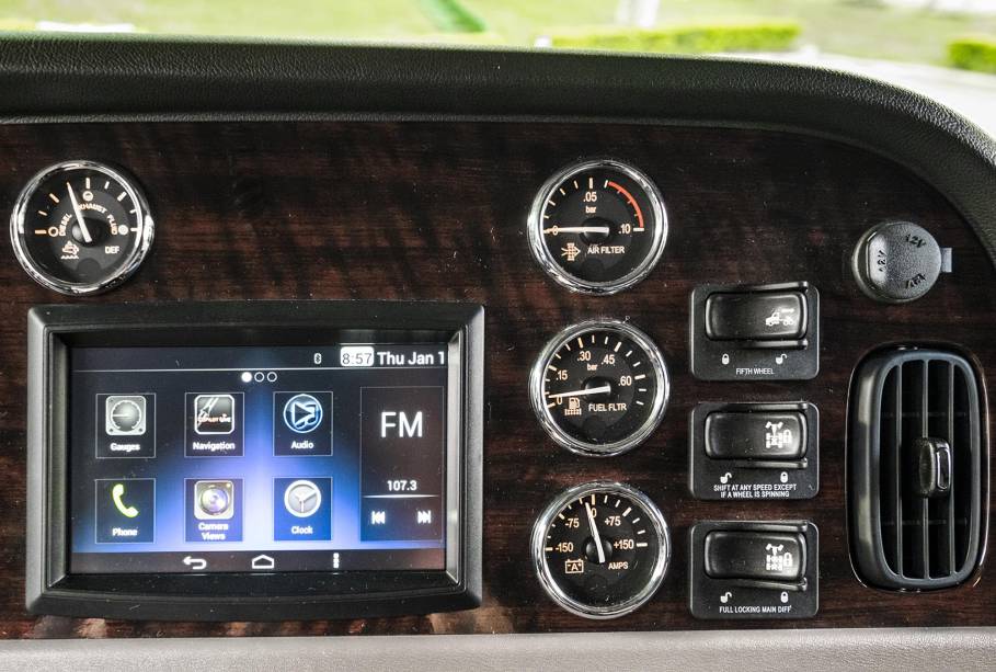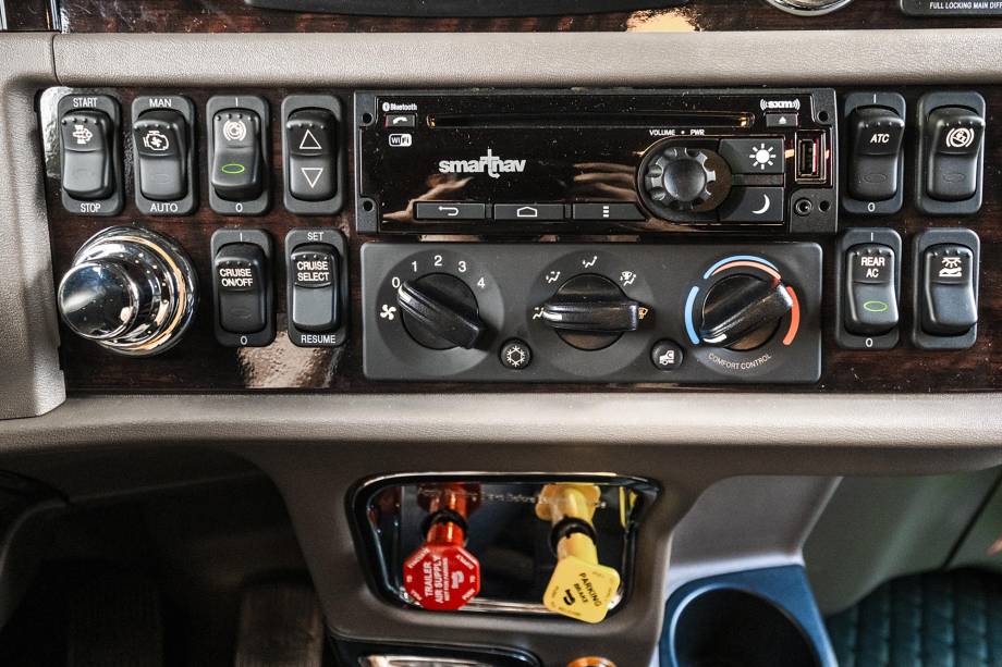 Deitado ali, ainda é possível comandar um gerador a diesel (APU) de 2kW instalado no chassi responsável por alimentar todos os eletrodomésticos quando o motor principal estiver desligado. Só não dá para chamar de suíte por não ter banheiro. Ainda assim, justifica seu longo reinado nas rodovias norte-americanas. E nas telonas.