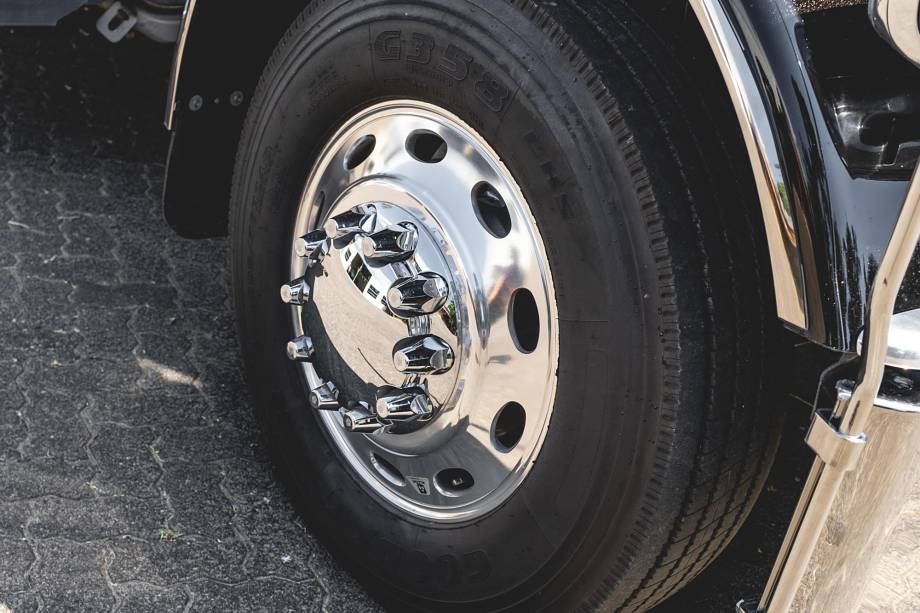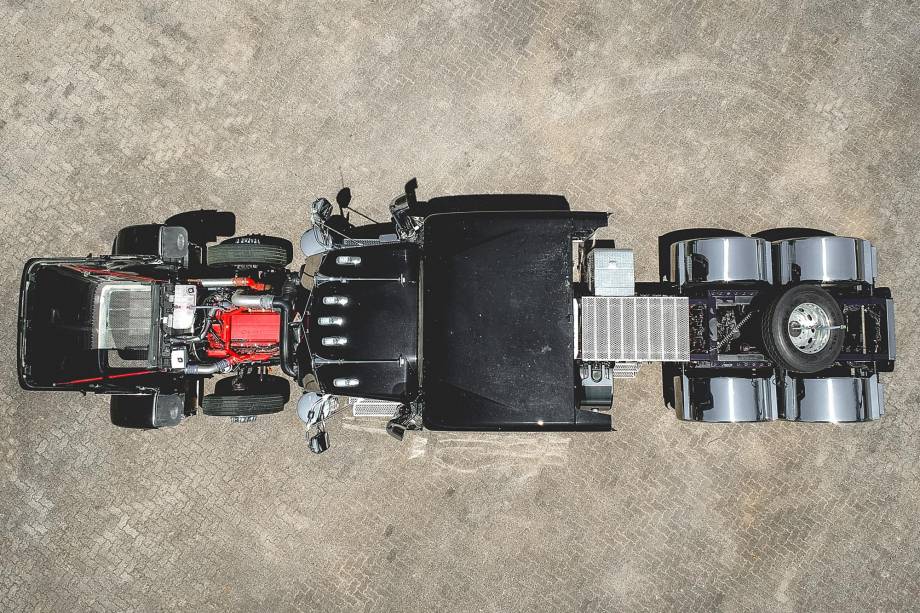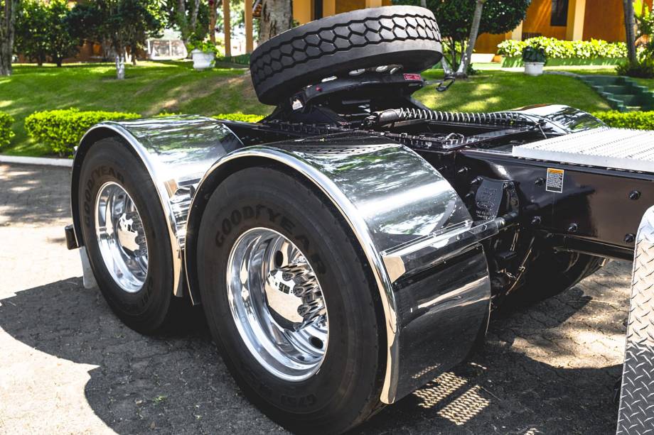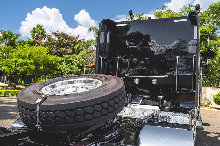 O caminhão das fotos é o exemplar 2/10, pintado em preto metálico, e já começou a ser customizado com para-lamas e para-choque traseiros de inox, além de lanternas com leds sequenciais. O proprietário ainda pretende cobrir por completo as longarinas. Afinal, esse caminhão nunca será conectado a um implemento.