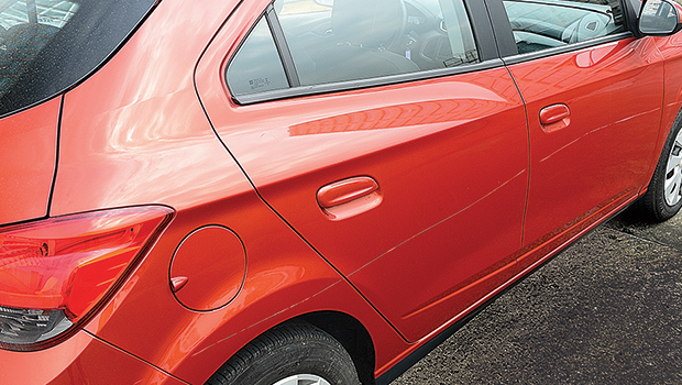 O mês começou mal para o Onix da frota de Longa Duração. Rodando com o editor do site de QUATRO RODAS, Márcio Ishikawa, o carro sofreu um risco em toda a lateral. “Mal vi o que houve. Estava numa avenida em São Paulo, na faixa da direita, quando algo bateu na lateral da carroceria. Olhei pelo retrovisor e notei algo parecido com um arame saindo da calçada e com a ponta invadindo a via. Só vi a extensão do dano quando cheguei ao prédio da Editora Abril”, diz Ishikawa.