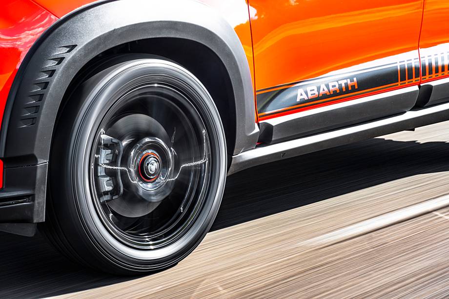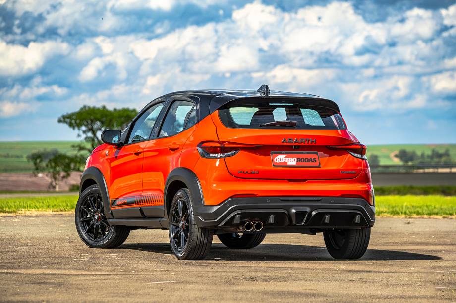 Claro, o Pulse Abarth é muito mais que um Pulse com motor de 185 cv bem programado. A receita da diversão também contempla barra estabilizadora dianteira mais grossa e eixo traseiro (15% mais rígido) do Fastback 1.3 turbo, além das rodas aro 17 mais leves e largas (tala 7”, que aumenta o diâmetro de giro de 10,5 para 10,9 m) com pneus Dunlop 11% mais aderentes e amortecedores e molas que enrijecem o conjunto em 13% na frente e 12% atrás.