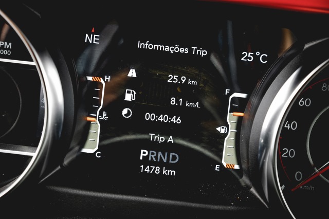 Na pista de testes, o Rubicon demonstrou outra qualidade que eu já suspeitava no roteiro de impressões ao dirigir: que ele é econômico. Saí de casa preparado para abastecer o tanque na volta ou no meio do caminho. Mas fui e voltei sem paradas. Nas medições, o Wrangler ficou com as médias de 7,4 km/l de gasolina na cidade, e 9,1 km/l na estrada. E isso com um desempenho bem interessante, uma vez que o Jeep, que pesa 2 toneladas, fez o tempo de 7,8 segundos nas acelerações de 0 a 100 km/h.