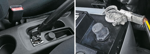 Concessionária não entregou o cabo que permite conectar iPod ao rádio do Versa (esq.) | Cabo se soltou do polo negativo da bateria assim que o carro saiu da concessionária (dir.)