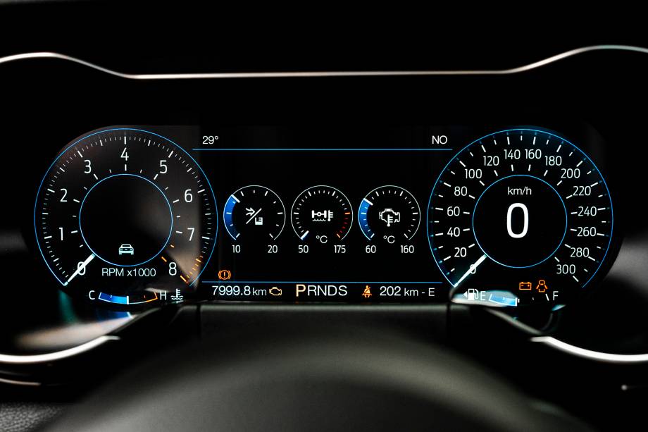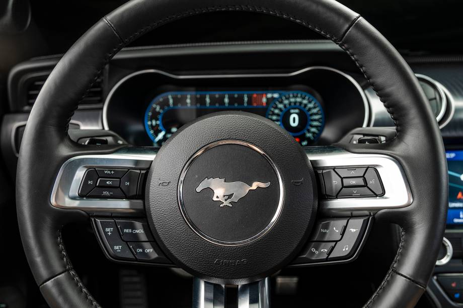 Enquanto em uma tocada mais tranquila as trocas de marcha acontecem cedo para tentar poupar ao menos um pouco de combustível, nos modos mais esportivos elas são esticadas para a melhor entrega de potência e torque. Mesmo assim, as trocas ficaram mais rápidas porque o Mach 1 tem um novo conversor de torque. Também nos nossos testes, ele foi de 0 a 100 km/h em 4,9 segundos. Em outras palavras, foi 0,1 s mais lento que o antigo Mustang GT Black Shadow, com 466 cv.