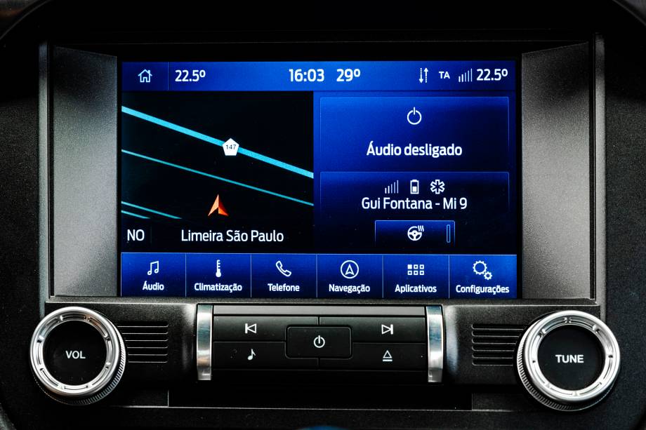 A central, apesar de moderna, tem visual antiquado e respostas que poderiam ser mais rápidas. Ressalvas também para o quadro de instrumentos, que mesmo sendo bonito e configurável, tem os comandos espalhados entre diversos menus, com uma navegação confusa.