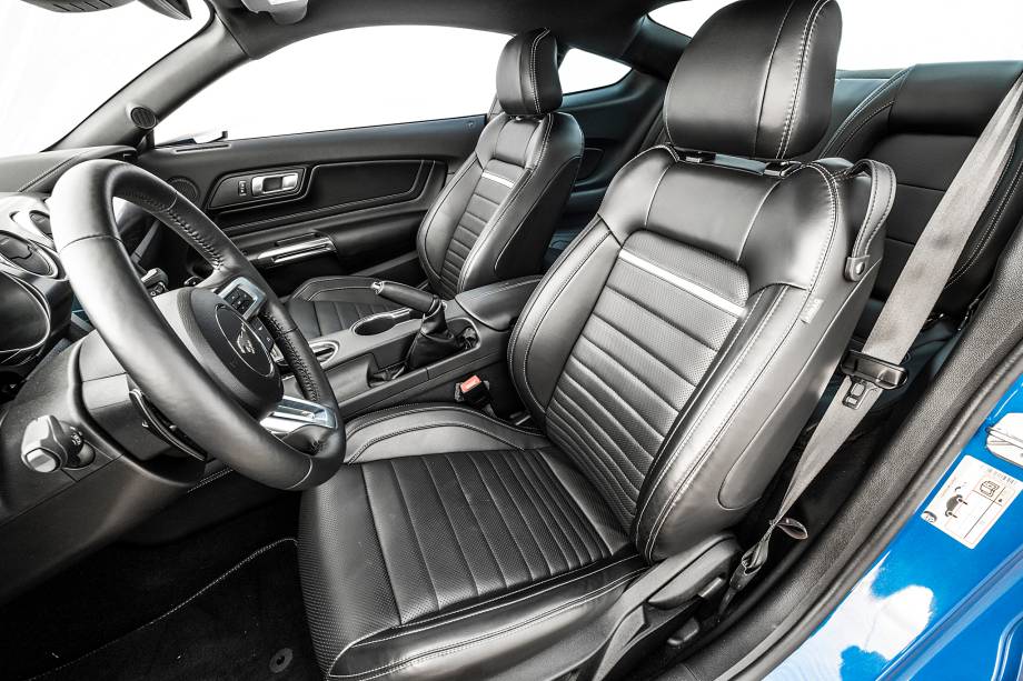 Com tantas qualidades, o Mach 1 peca em um aspecto: espaço. Quem vai na frente, vai bem. Porém, é praticamente impossível levar alguém no banco traseiro pelo mínimo espaço para as pernas e para a cabeça, que fica encostada no forro ou no vidro. Além disso, só “há espaço” para dois, sem a opção de levar alguém no meio. Mas dá para perdoar, afinal, o Mustang não tem qualquer pretensão familiar e tem outras prioridades.